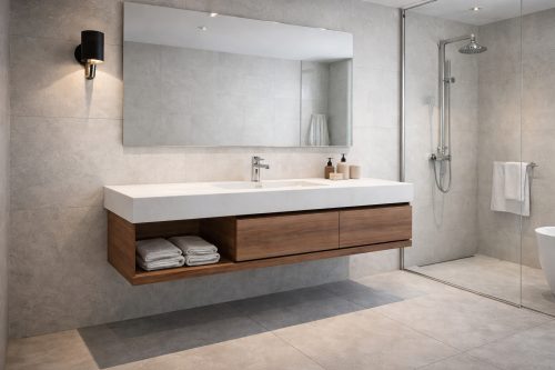 Lavatório Duplo Suspenso em Resina 180×55 cm