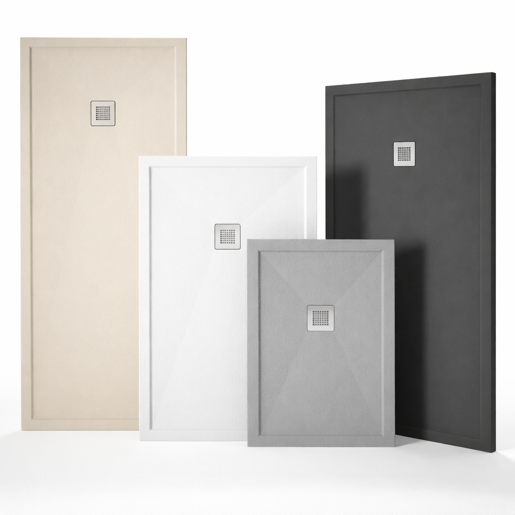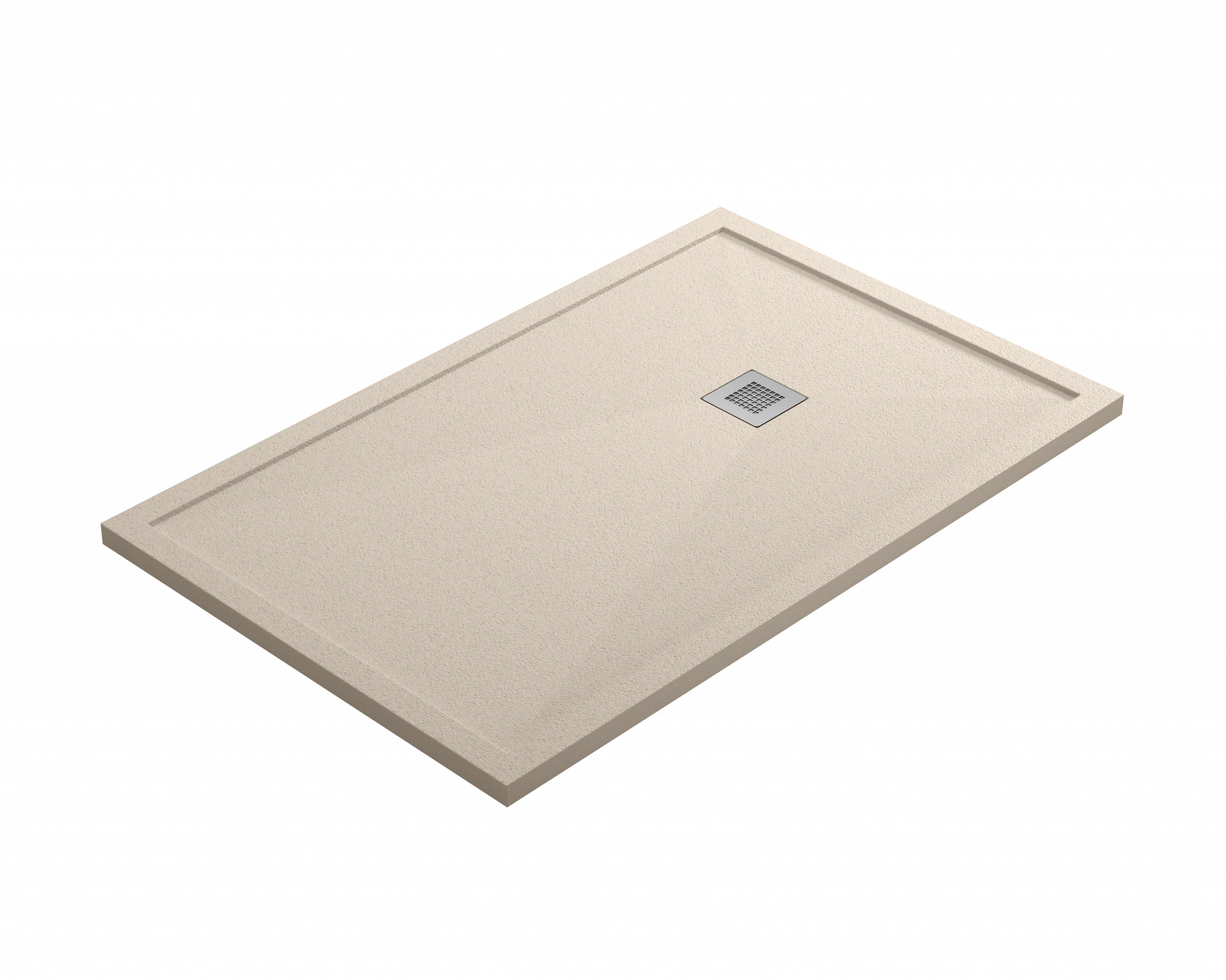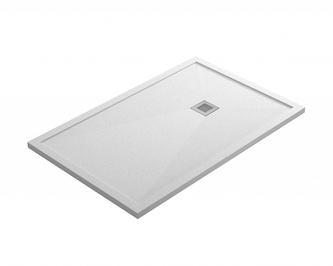 Base de duche fabricada em resina com carga mineral de baixa densidade, revestida com Gel Coat sanitário antibacteriano de última geração. A superfície com textura efeito pedra oferece propriedades antiderrapantes classe C3, garantindo segurança e conforto.