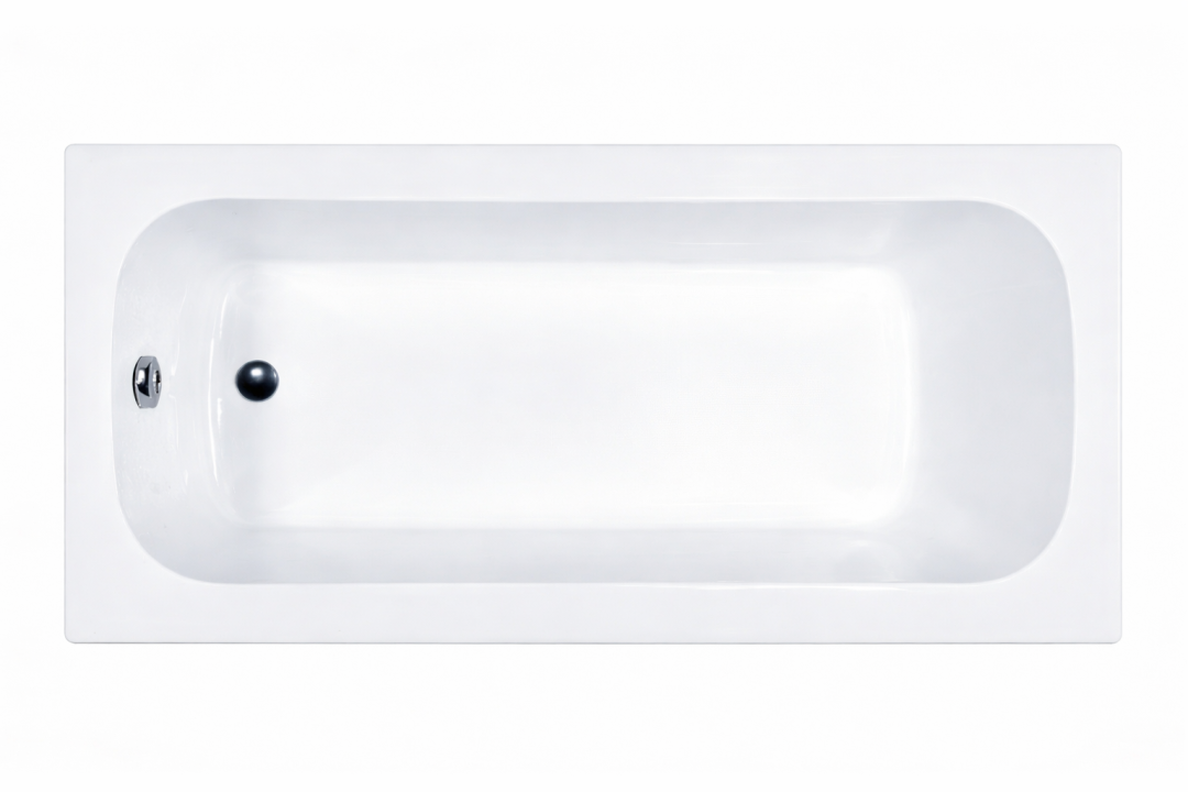 Banheira em acrílico com acabamento polido e dreno incluído. Estão disponíveis duas dimensões de 1,60m ou 1,80m.