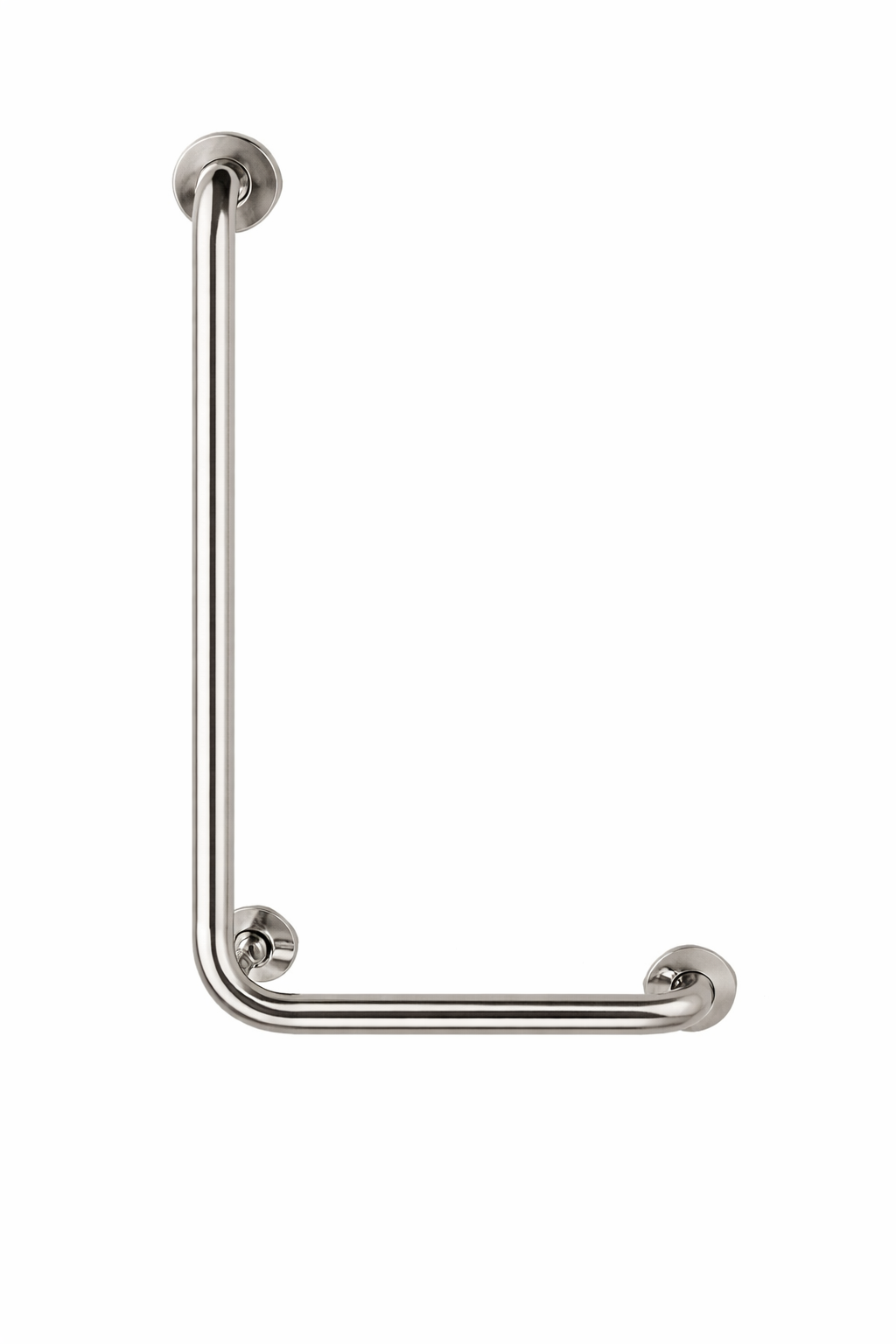 Barra de apoio em L em aço inoxidável 304, disponível em vários acabamentos e cores, incluindo escovado, cromado, polido, branco e preto mate.