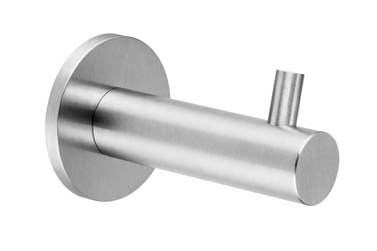 Cabide de parede em forma de gancho em aço inoxidável 304 escovado. Inclui acessórios de instalação e fixação.