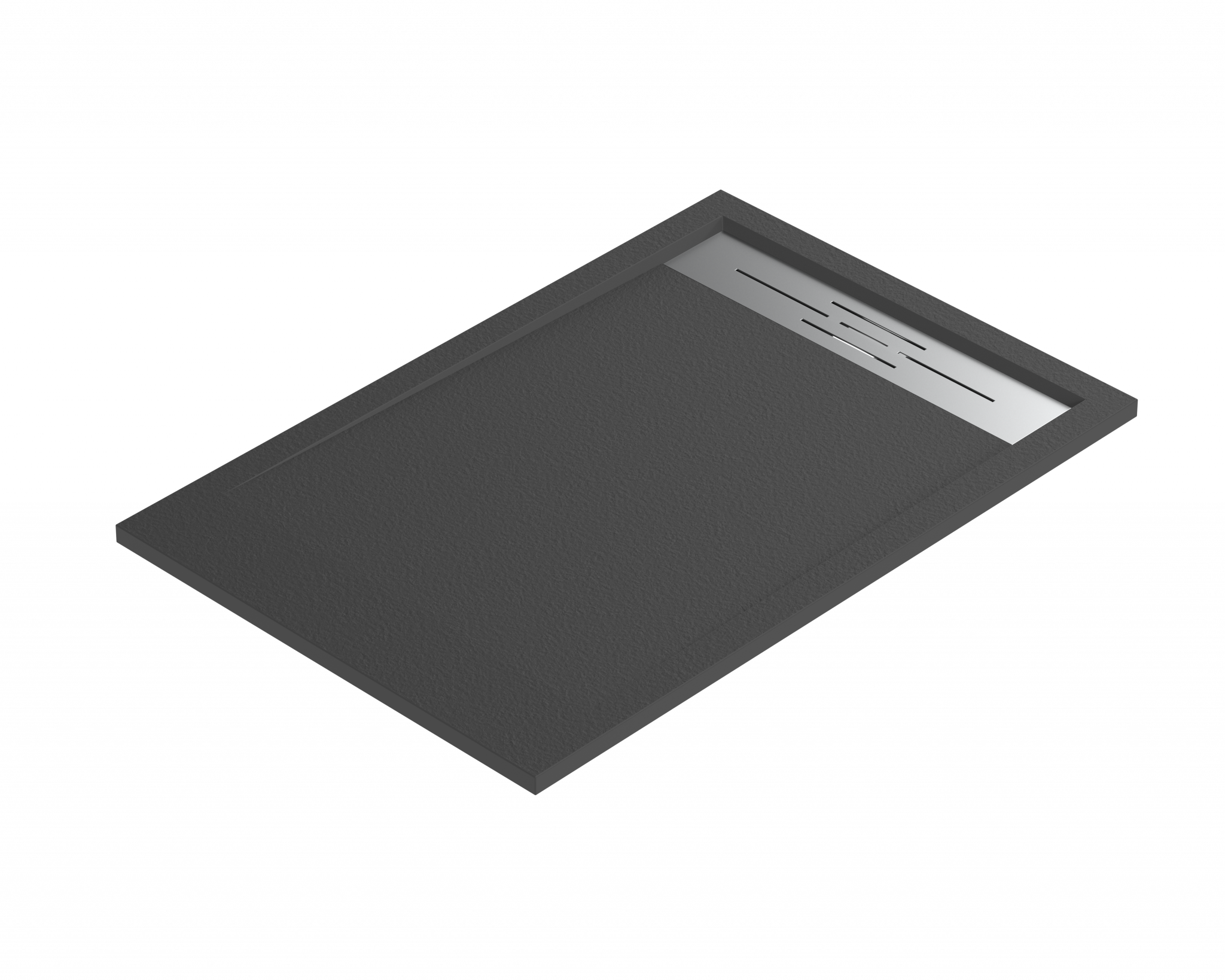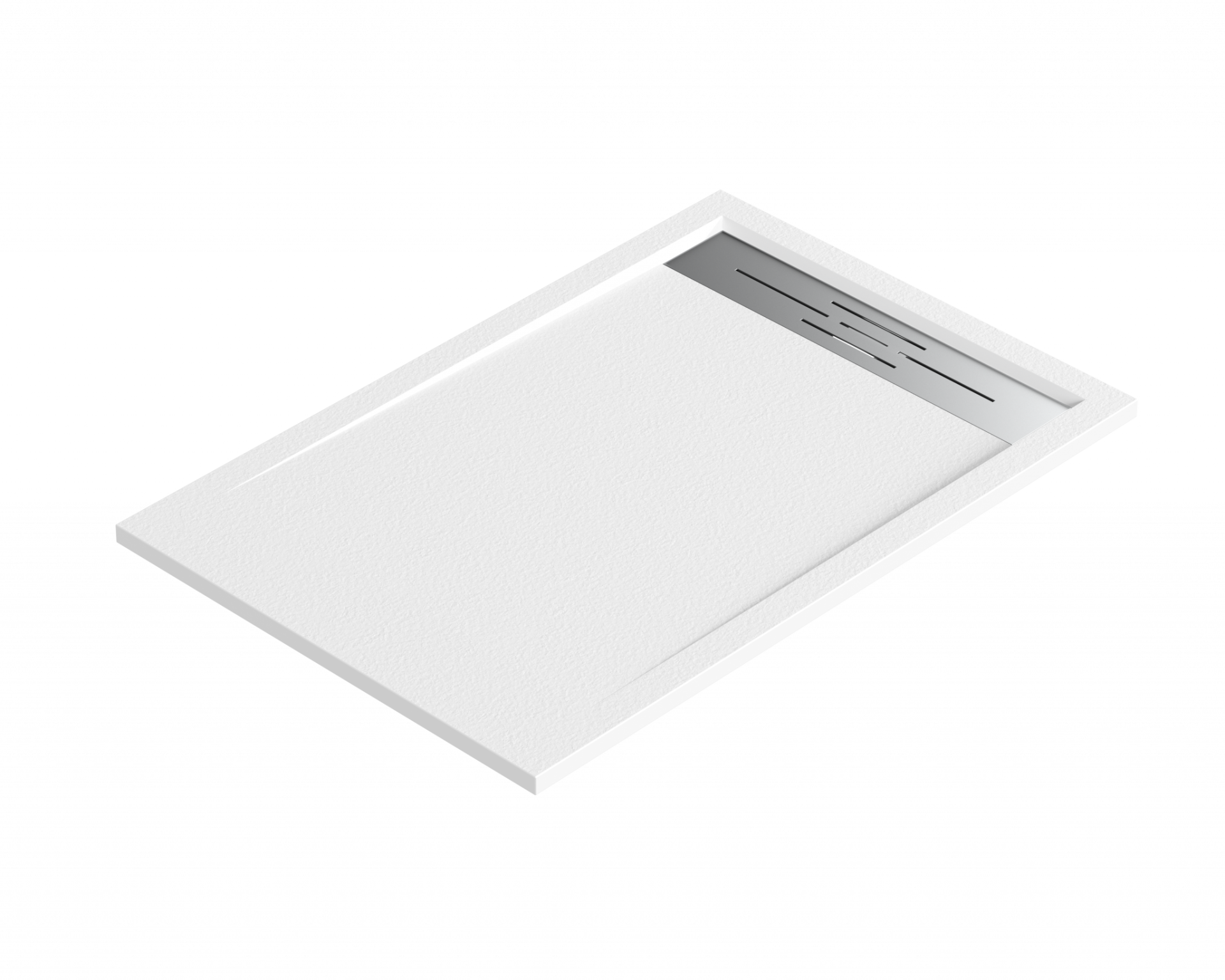 Base de duche fabricada em resina com carga mineral de baixa densidade, revestida com Gel Coat sanitário antibacteriano de última geração. A superfície com textura efeito pedra oferece propriedades antiderrapantes classe C3, garantindo segurança e conforto.
