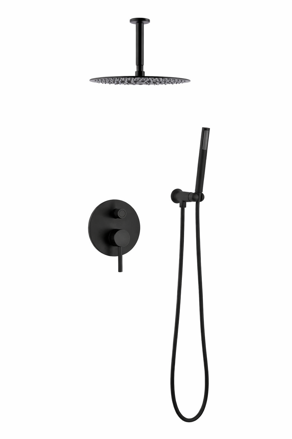 Conjunto de duche com chuveiro de teto e de mão em aço inoxidável 304. Disponível em vários acabamentos.