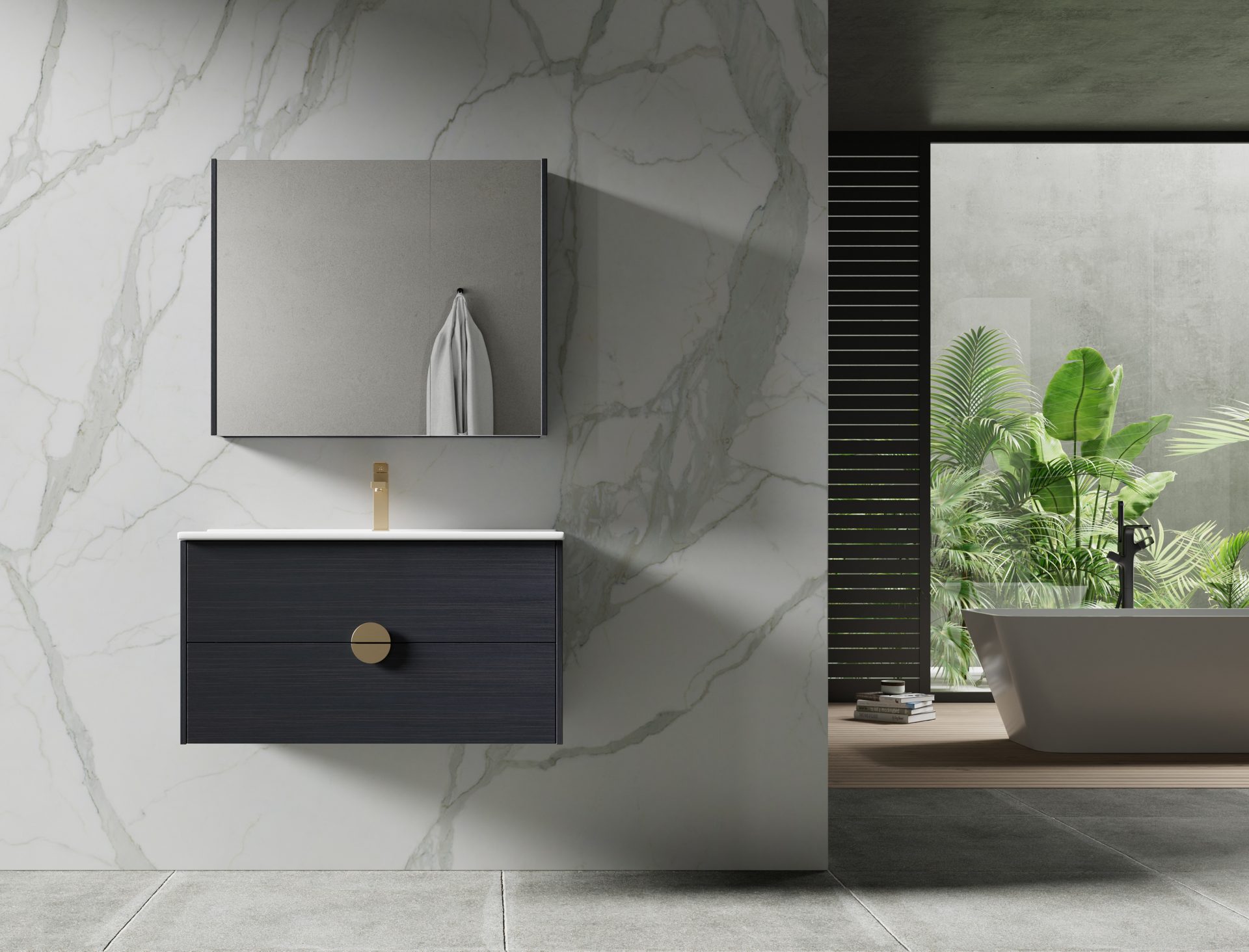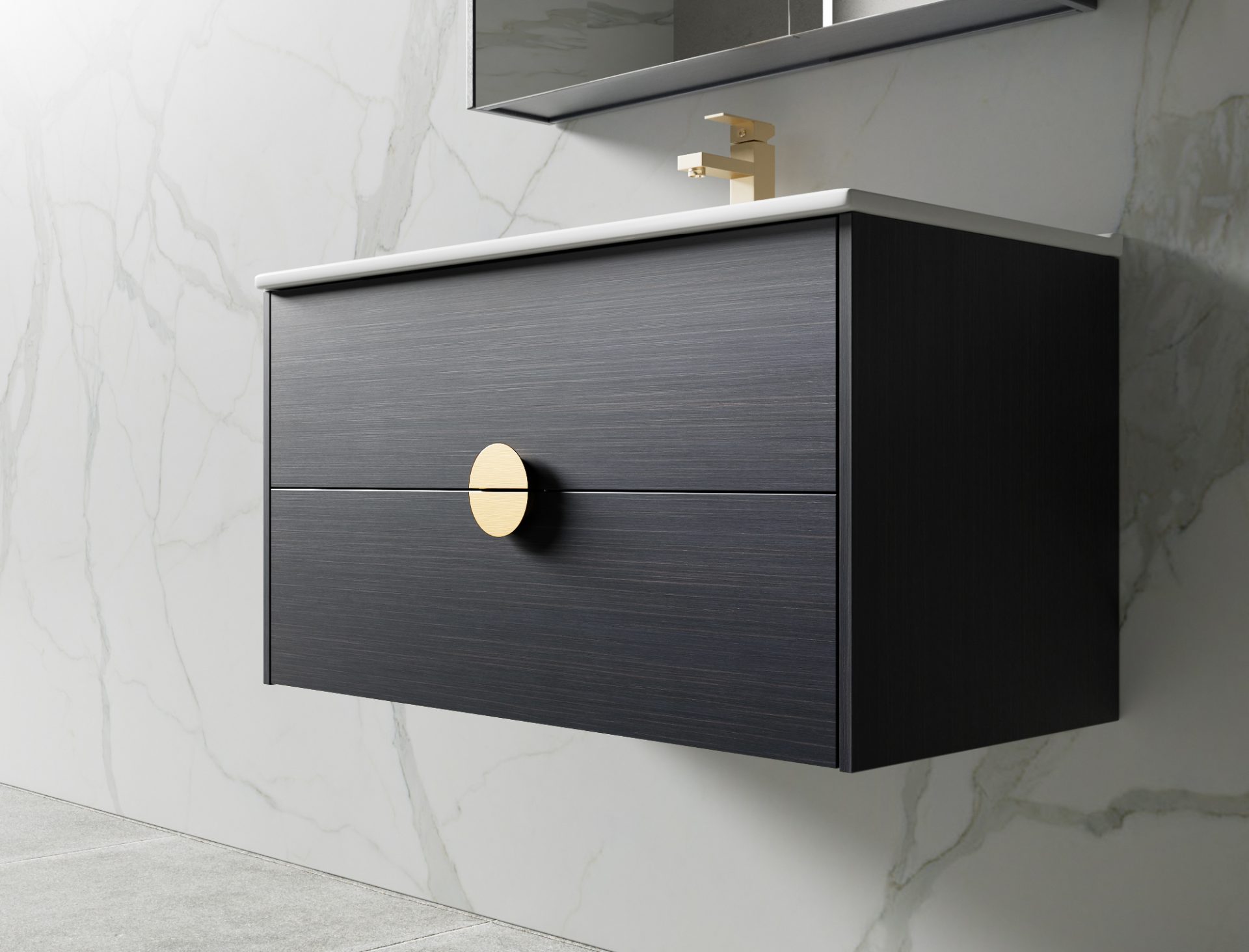 Móvel em MDF com 15mm de espessura com acabamento em melamina madeira natural ou personalizado. As dobradiças e gavetas são equipadas com sistema de fecho suave.