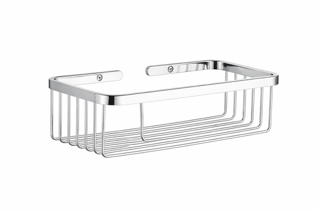 Prateleira de canto em aço inoxidável 304 no acabamento cromado. Disponível em várias cores.
