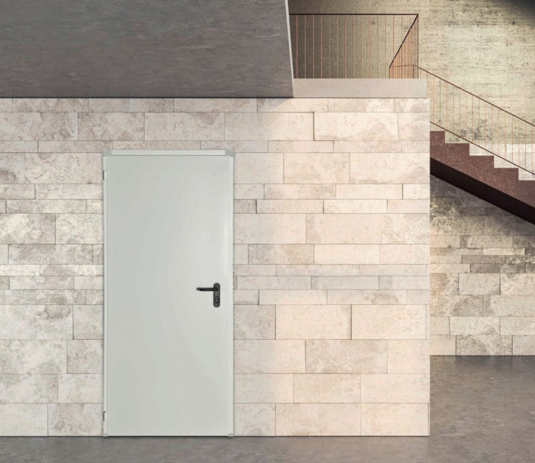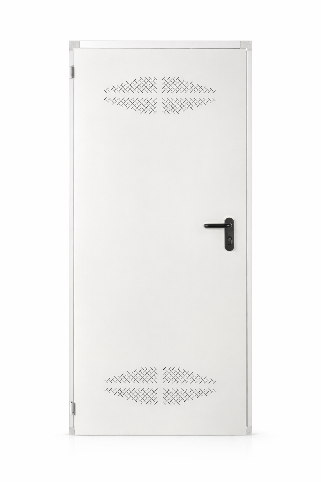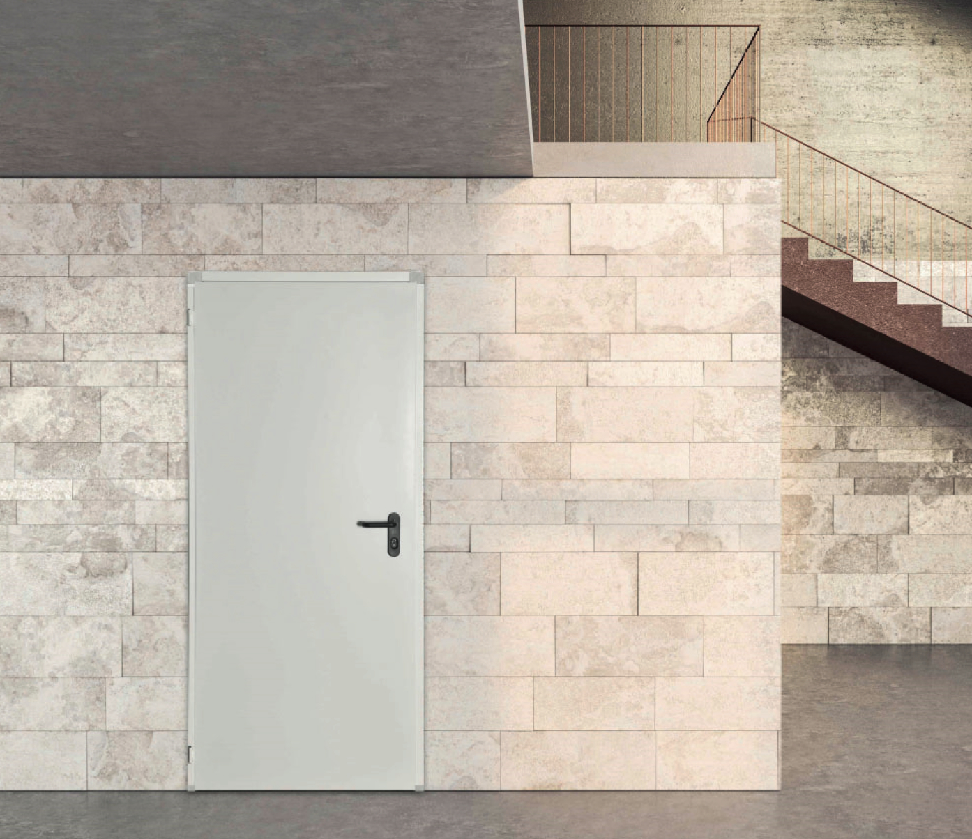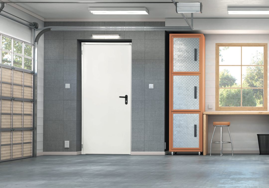 Trata-se de uma porta multifuncional reversível, adequada para aplicações em zonas técnicas e de serviço como arrecadações, armazéns ou contentores.