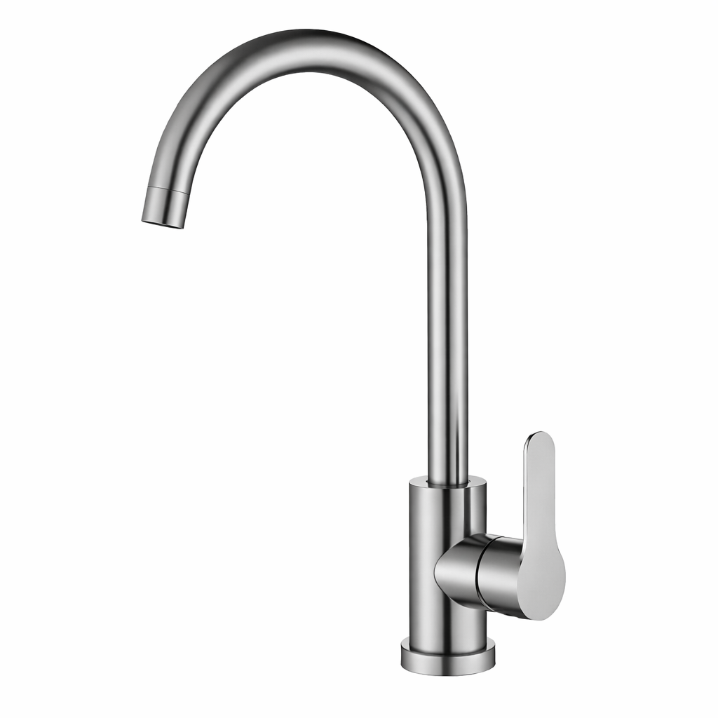 Torneira de cozinha em aço inoxidável 201 com vários acabamentos disponíveis.