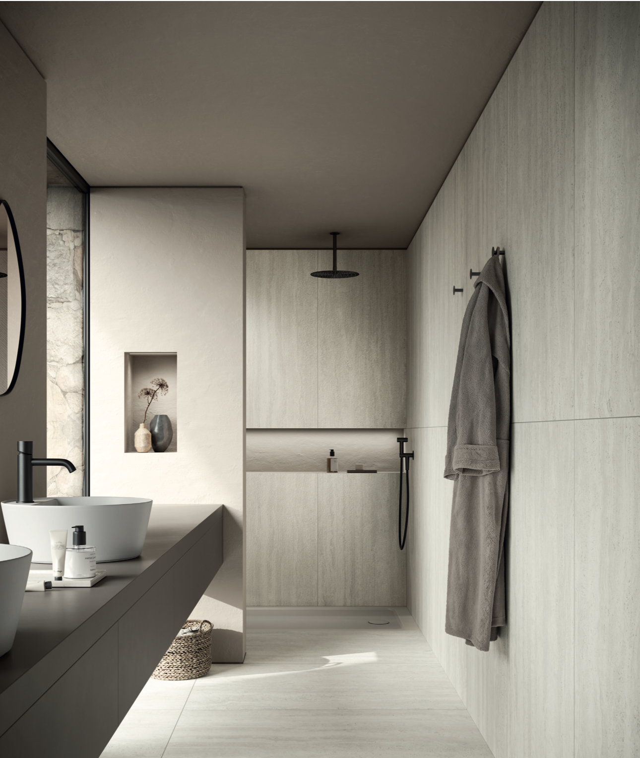 Travertino é uma coleção que combina a suavidade dinâmica do material com a sua herança arquitetónica milenar, projetada em espaços contemporâneos. Disponível em três cores com um design minimalista que reforça a elegância da marca.