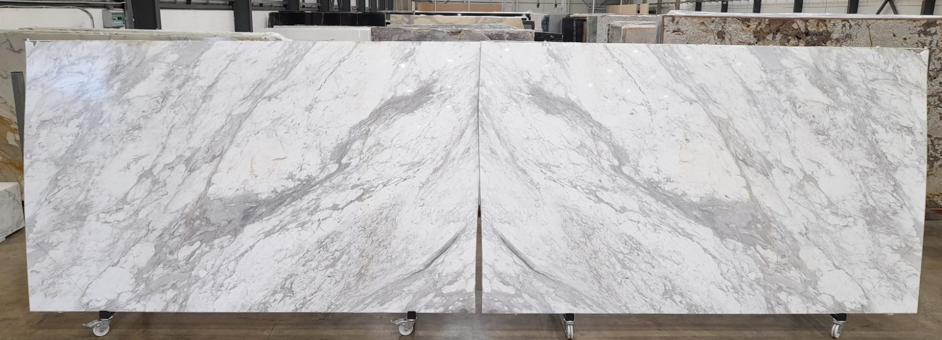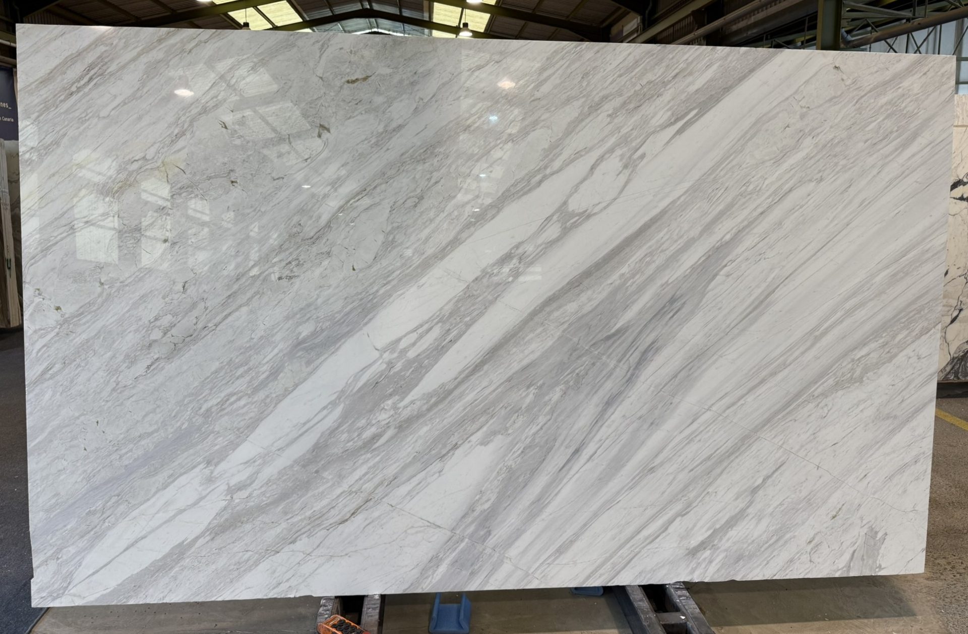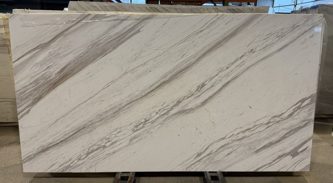 Mármore Volakas polida, ideal para pavimentos e paredes interiores. Disponível em lajes e vários formatos.